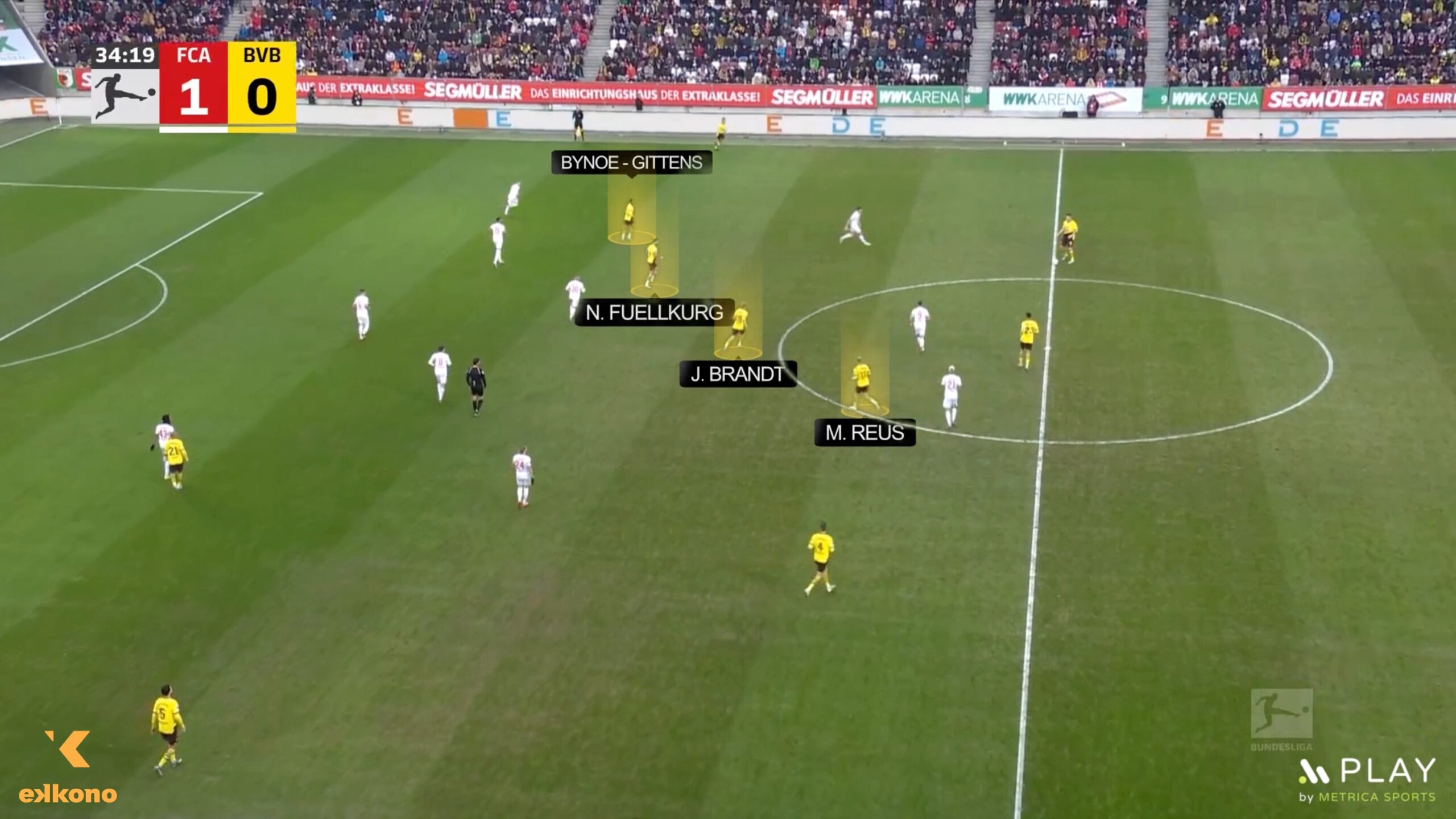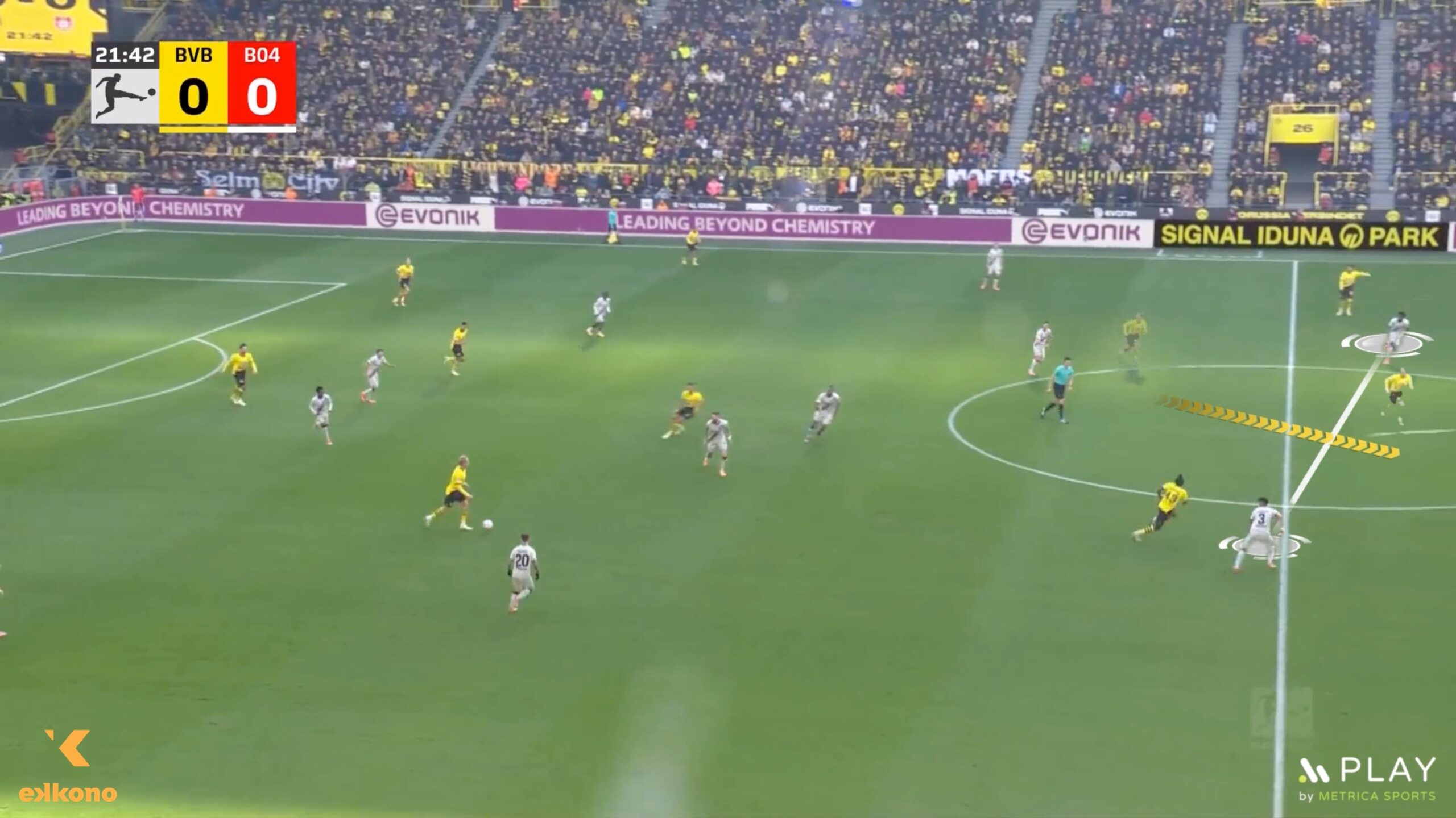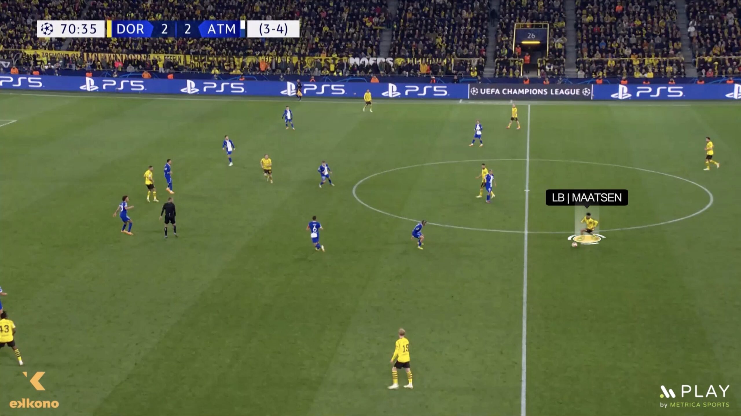 In this action, we can see how a minimum of three players of Dortmund are ready to attack the space behind the defensive line, keeping the defensive line busy.